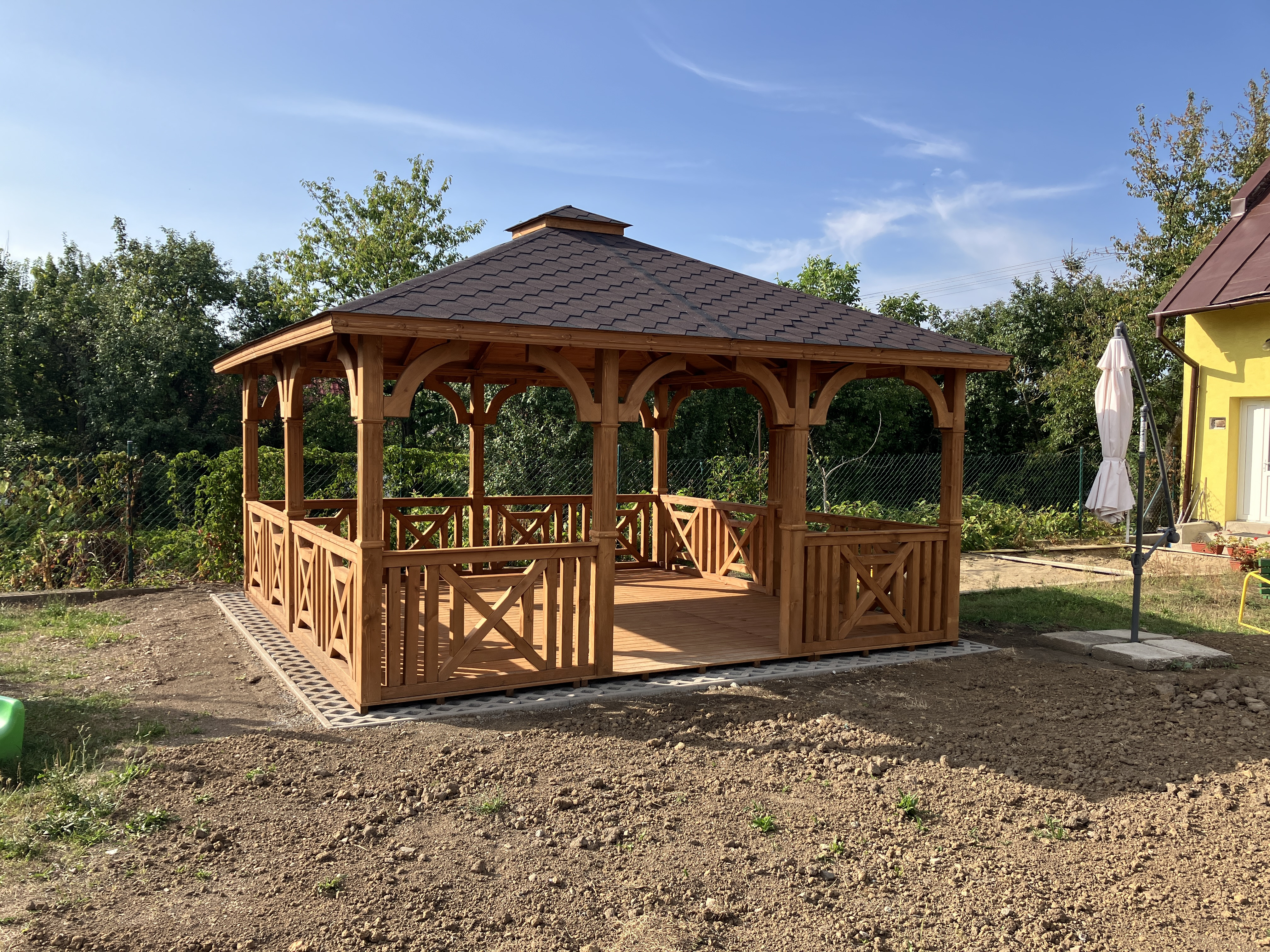 Počas leta sme ho stihli úspešne realizovať a výsledkom je tento krásny nový altánok.